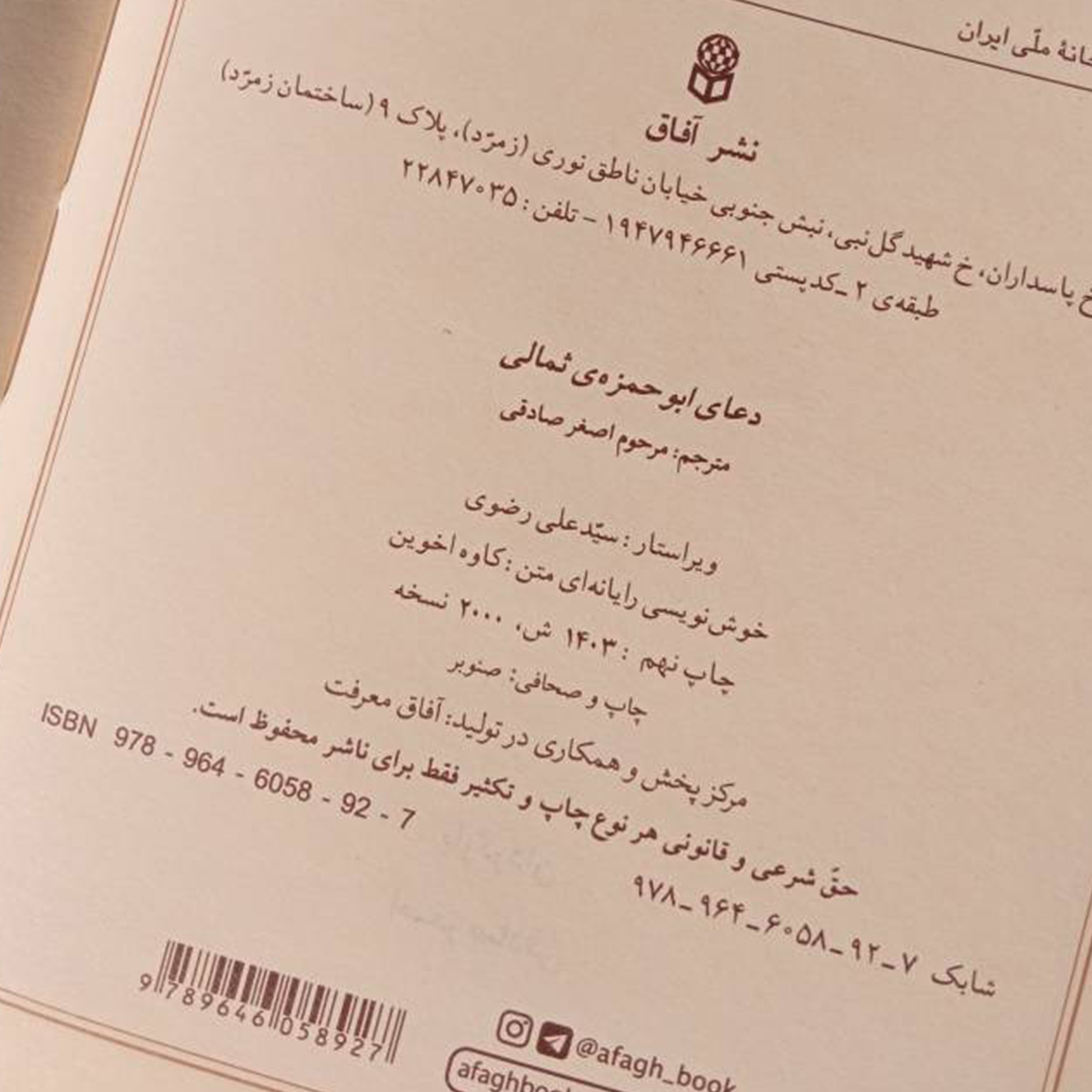 کتاب دعای ابوحمزهی ثمالی (نفیس)
