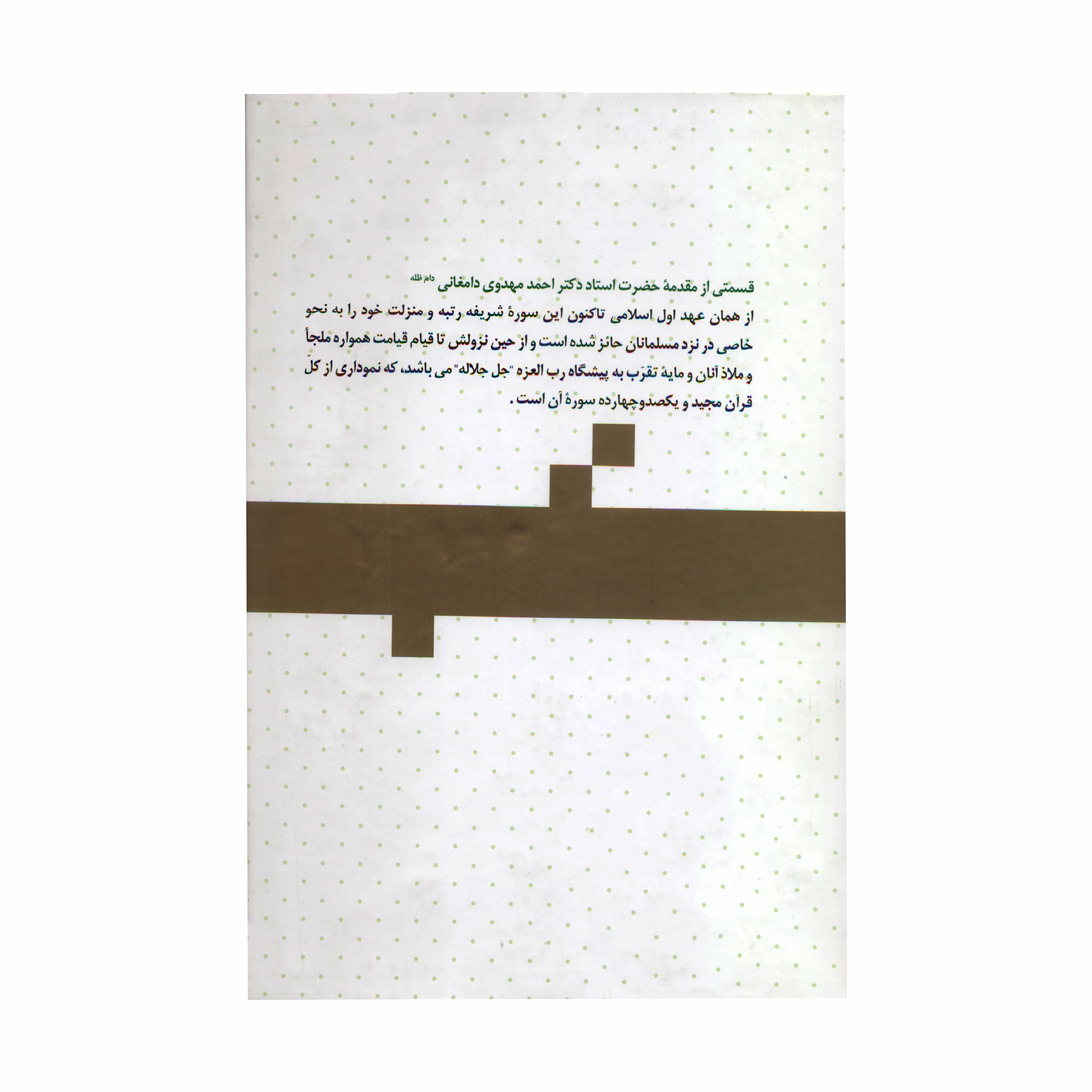 قسمتی از مقدمه حضرت استاد دکتر احمد مهدوی دامغانی : از همان عهد اول اسلامی تاکنون این سوره شریفه رتبه و منزلت خود را به نحو خاصی در نزد مسلمانان حائز شده است و از حین نزولش تا قیام قیامت همواره ملجا و ملاذ آنان و مایه تقرب به پیشگاه رب العزه جل جلاله می باشد که نموداری از کل قرآن مجید و یکصد و چهارده سوره آن است.